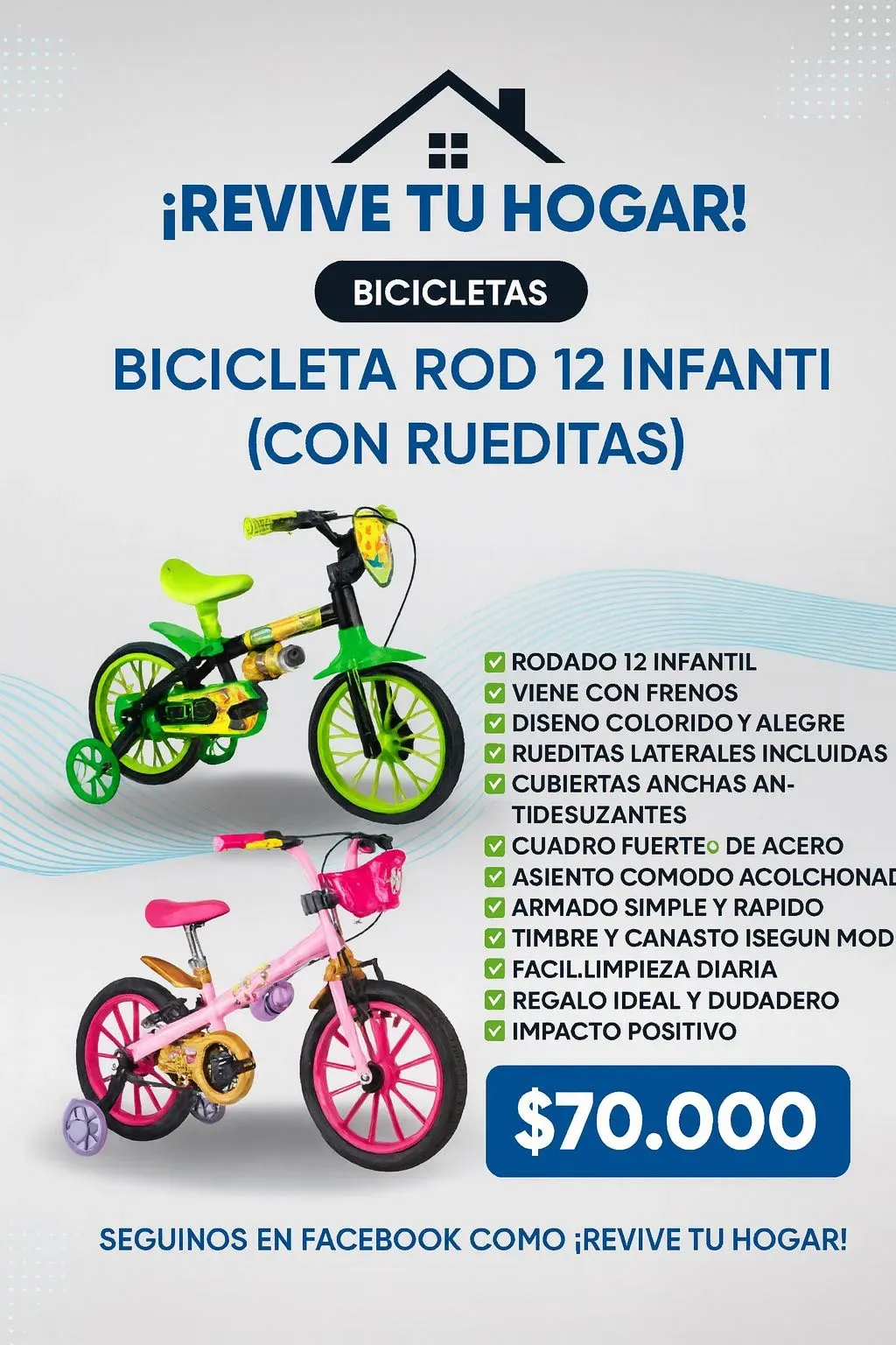 🚲 Bicicleta Rodado 12 con Rueditas – Ideal para los más chiquitos