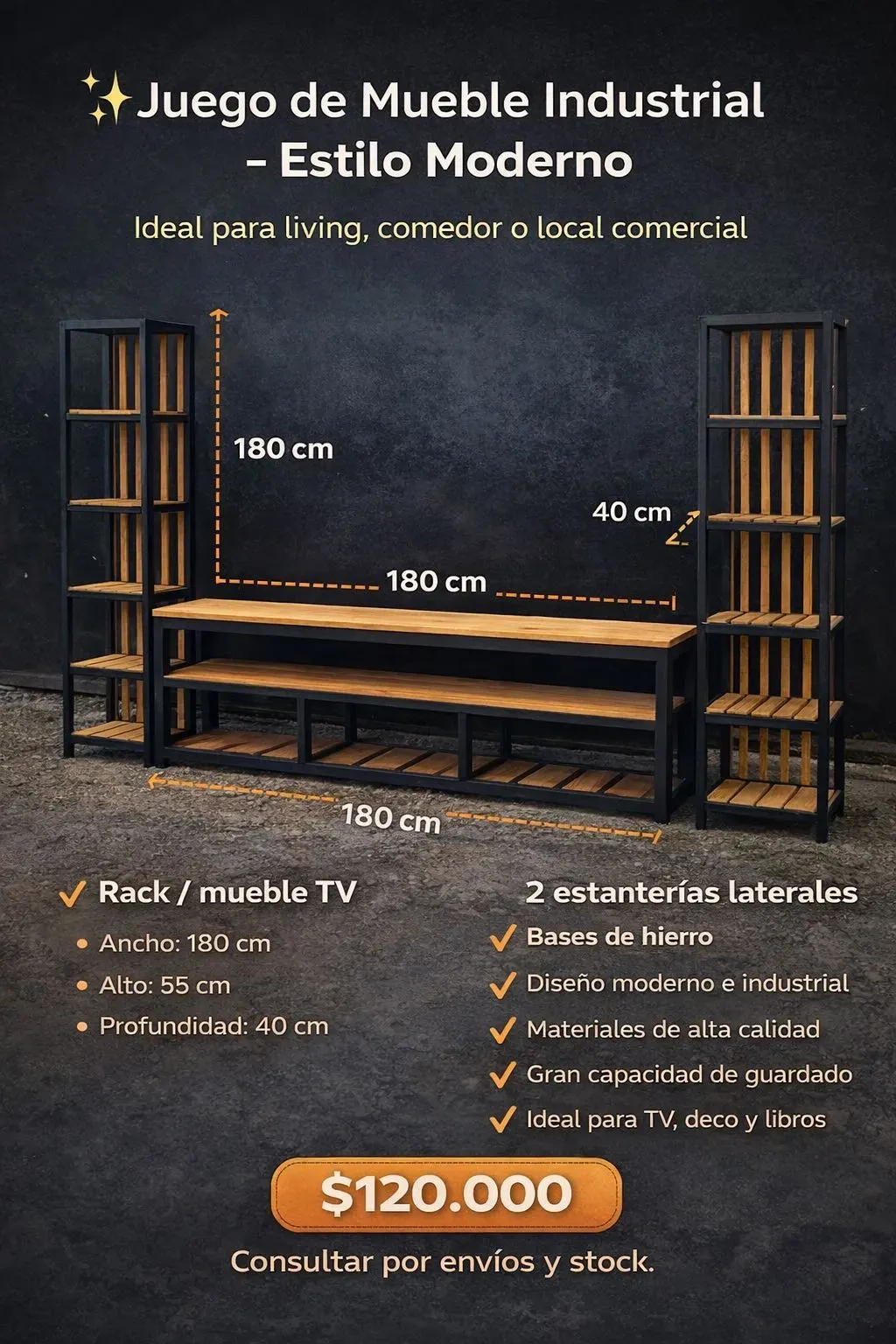 ✨ Juego de Mueble Industrial – Estilo Moderno ✨